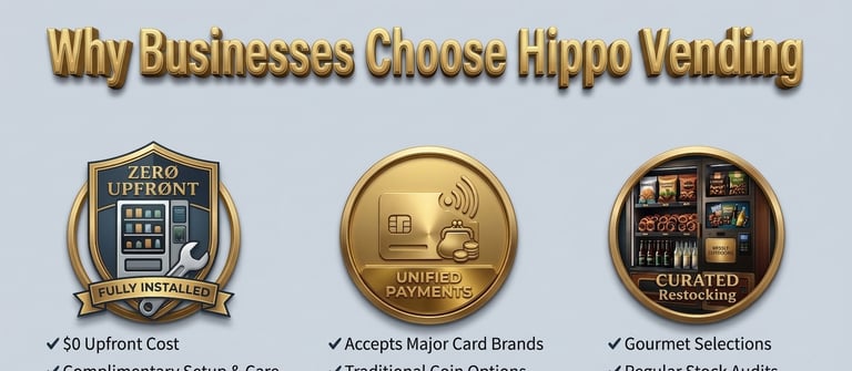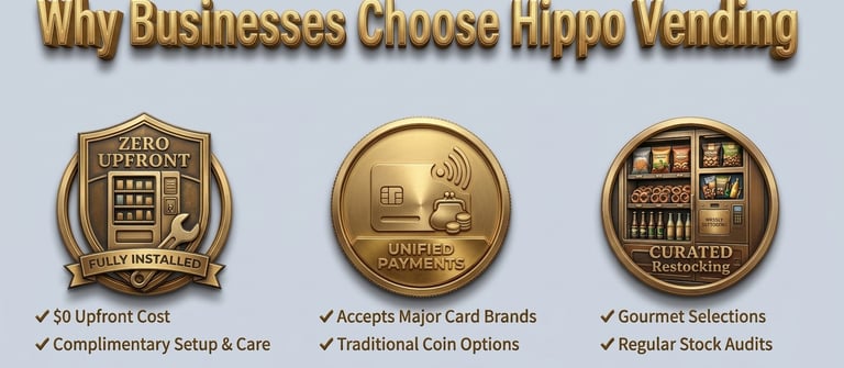 In 2026, Hippo Vending™ and our team are committed to putting our clients first in everything we do. We pledge to provide reliable service, thoughtfully restocked machines, and prompt, dependable support you can count on.
